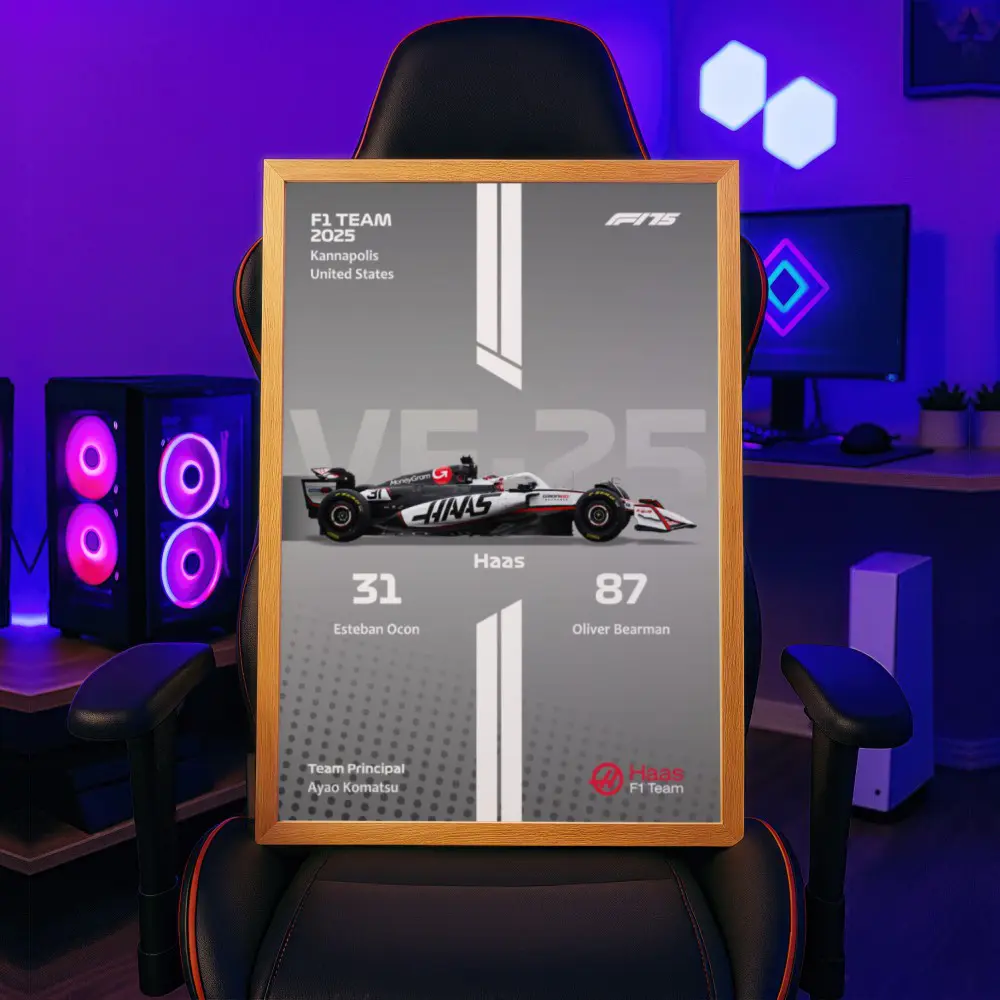 Mismo estilo: Cuadro de F1 2025 Haas VF-25 – Ocon & Bearman