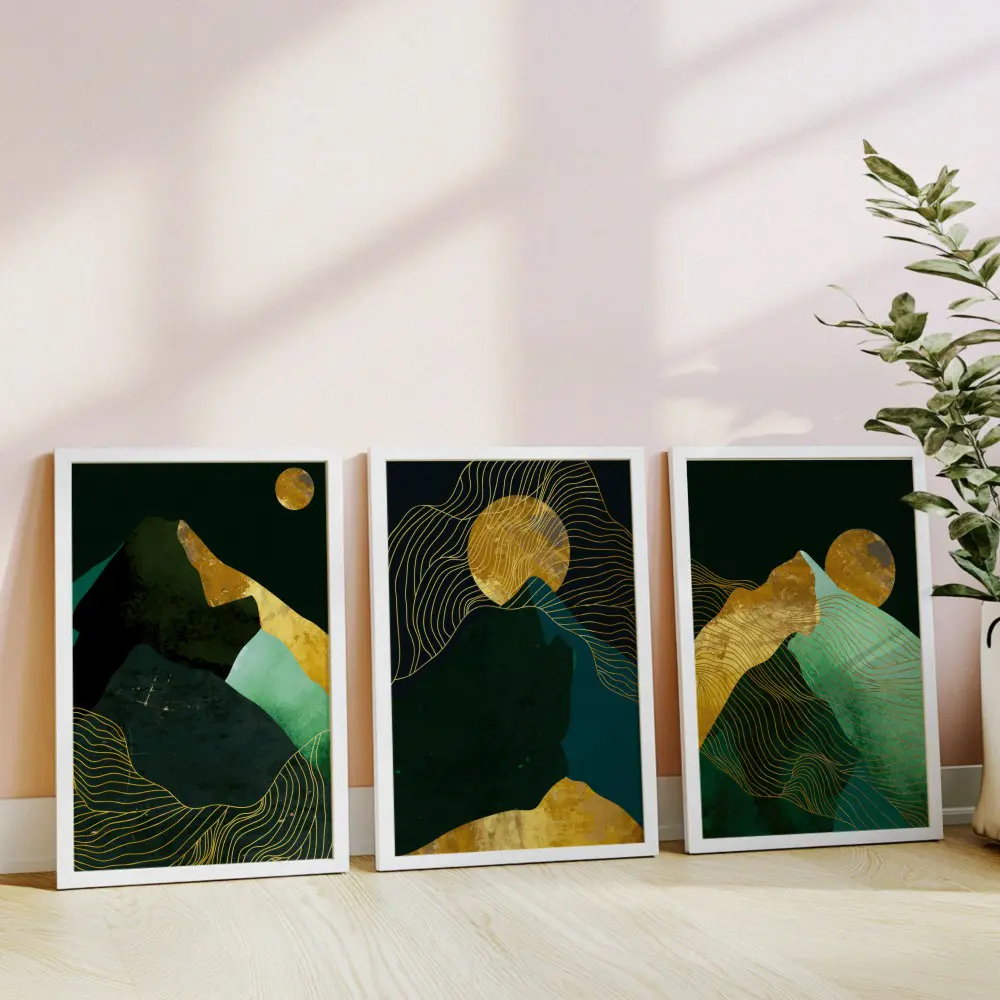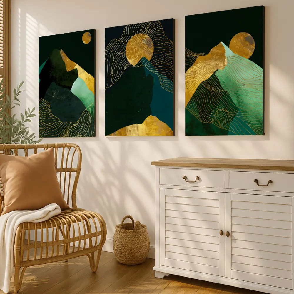 Mural Tríptico de Montañas Abstractas